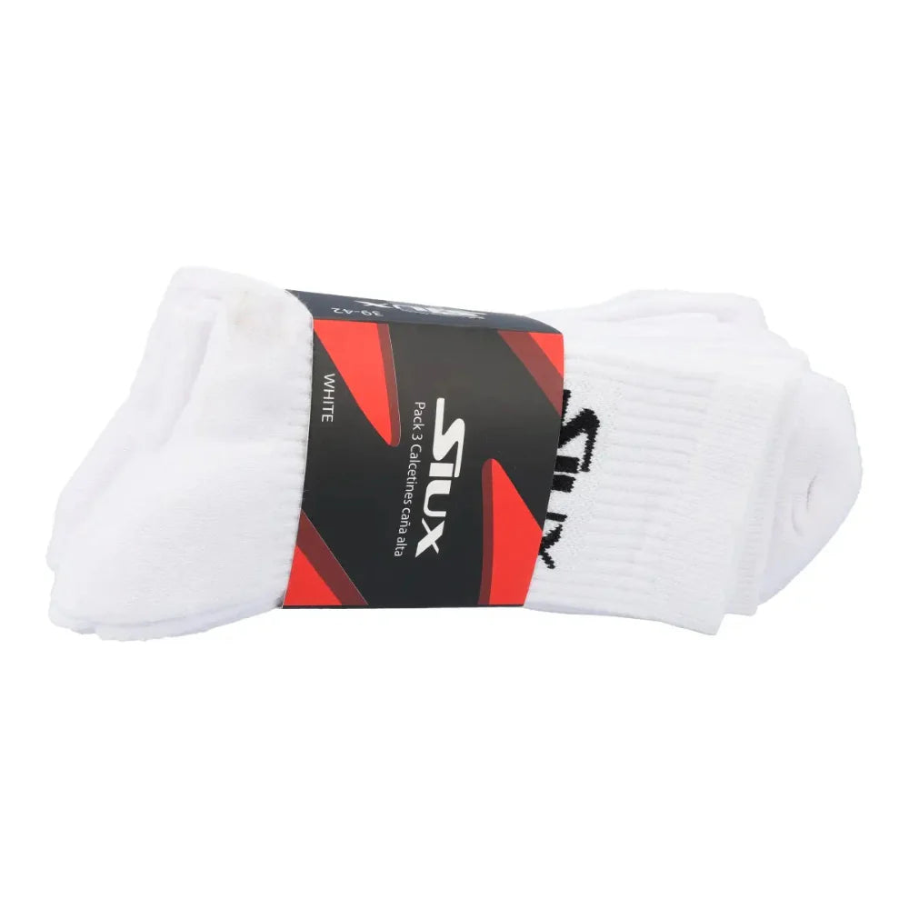 The Siux Dhaka High-Cut Socks (Pack of 3), designed for padel players, deliver superior comfort and durability for intense matches. Crafted from a cotton-polyester blend with elastic cuffs, these socks ensure a secure fit and breathability, keeping your feet cool and supported during play.