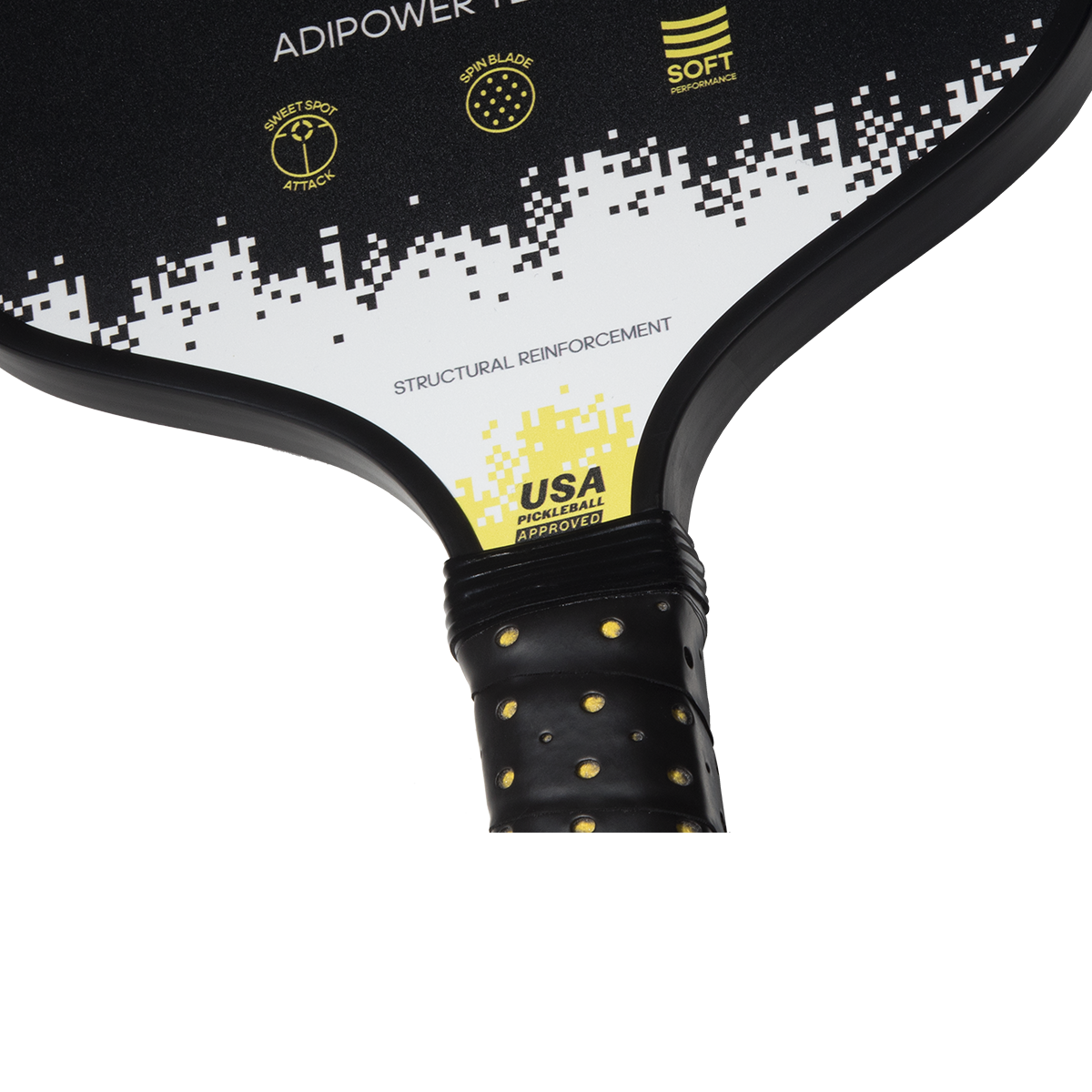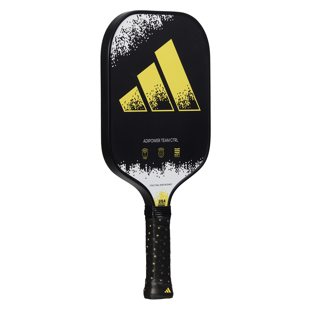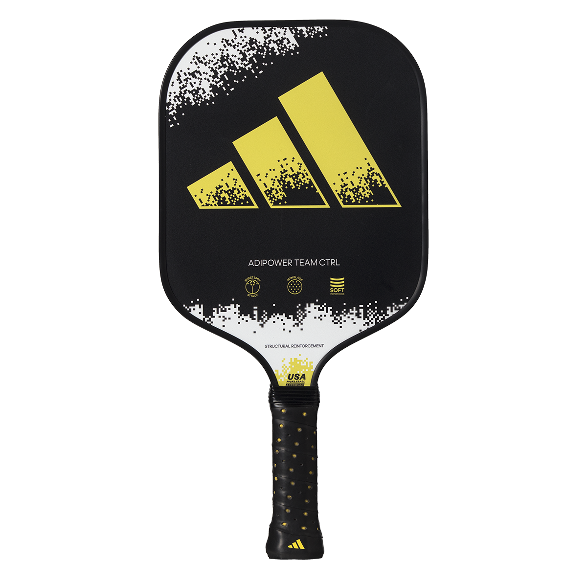 The Adipower Team CTRL is a paddle that guarantees the best handling on court and incorporates some of the best adidas technologies brought to pickleball yet. With it in your hand you will feel a combination of balance, comfort, and the ability to handle every rally in the best way. This paddle is made to respond to all situations and is designed for players of all levels – from beginners through to advanced. It is therefore the perfect option which to evolve and improve your game. The Structural Reinforcement technology increases its stiffness for better performance on powerful shots. The rough coating on the surface of the Spin Blade Max gives you the best spin options. The white, black, and yellow design, simple but attractive, responds to what this Adipower Team CTRL is, an easy to play paddle with great capabilities.
