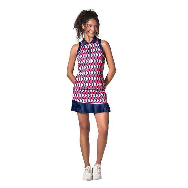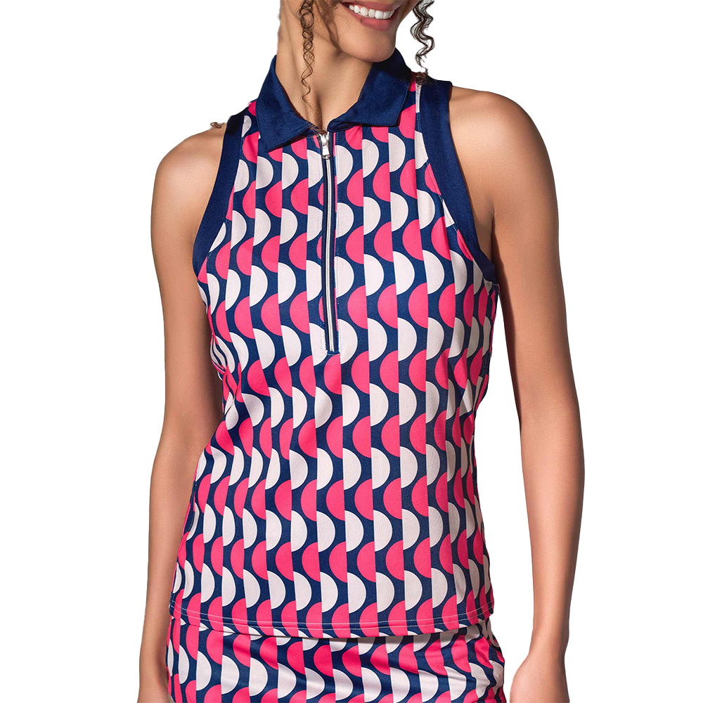 inPhorm NYC Ava Sleeveless Women's Golf & Tennis Polo Top - Geo Print/Ink