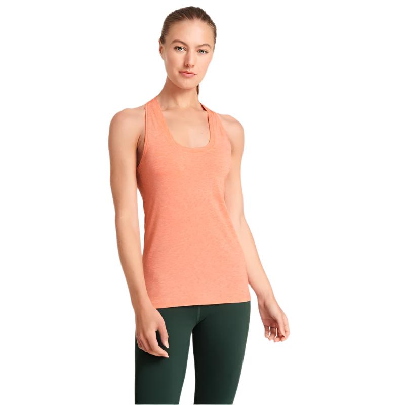 The Ayre Racerback Tank’s flattering fit pairs perfectly with the racerback sports bra for a soft, sporty look. The soft, heathered fabric breathes through any workout and the just-below-hip length flatters.
