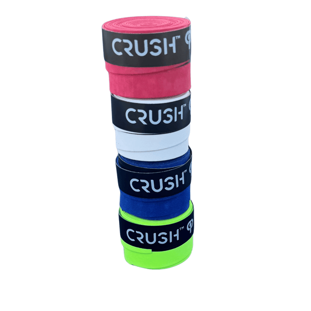 CRUSH Dry Overgrips - Look slick on the court and have a strong grip on your paddle with our custom CRUSH embossed dry overgrip wraps. Pick your favorite color; black, hot pink, lime green, red, royal blue or white.