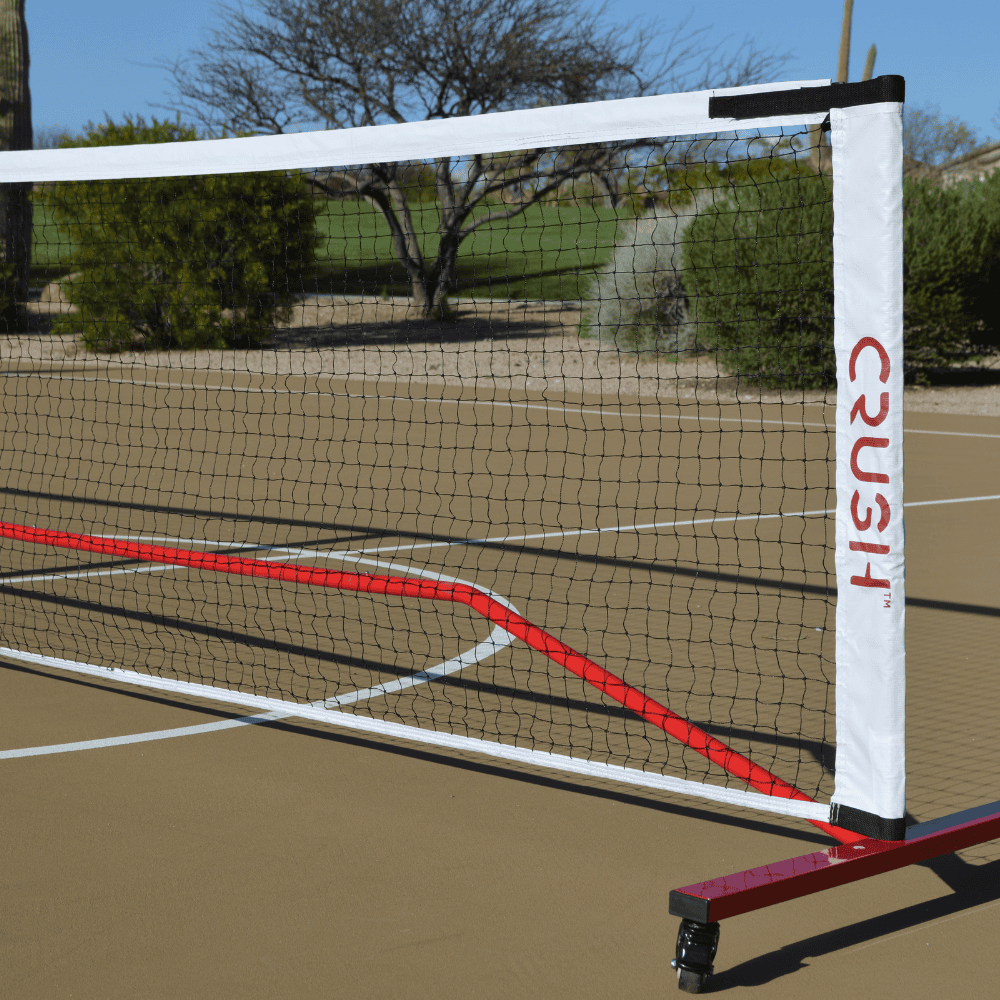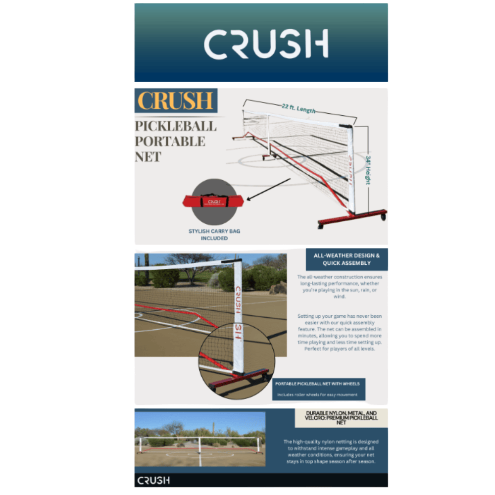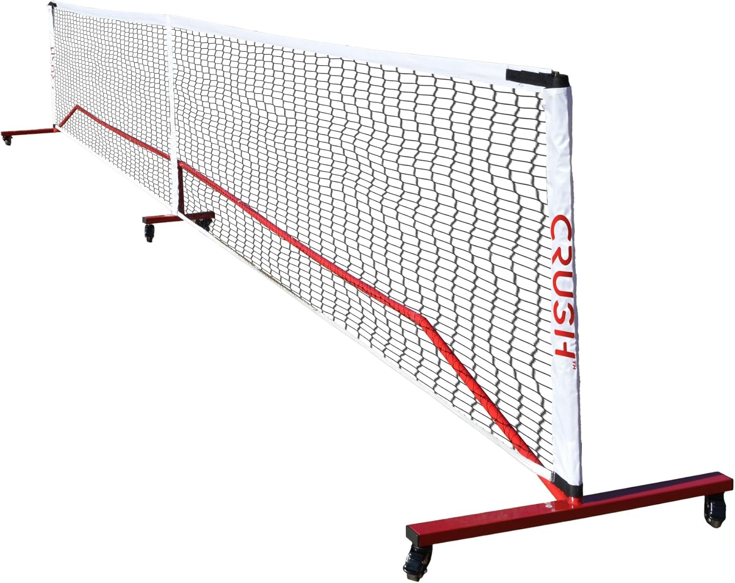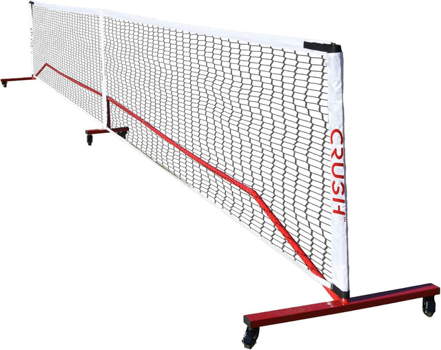 CRUSH Pickleball Portable Net. Be ready to play in a snap with our custom pickleball net that you can roll out to your basketball court, the park, your street, your driveway and any cement slab surface. Complete with convenient carry bag.