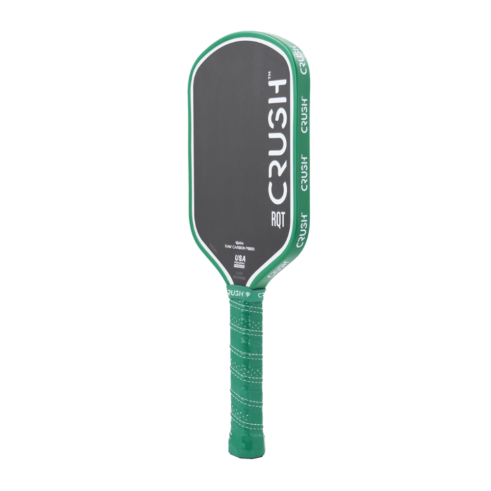 Introducing the new CRUSH RQT, a pickleball paddle designed for tennis players. The unique features of RQT (pronounced "racquet") include a maximum allowable 17-inch-long frame and an extra-extended 6.5" handle that work together to solve a major problem for many tennis players transitioning to pickleball - hitting two-handed backhands comfortably.