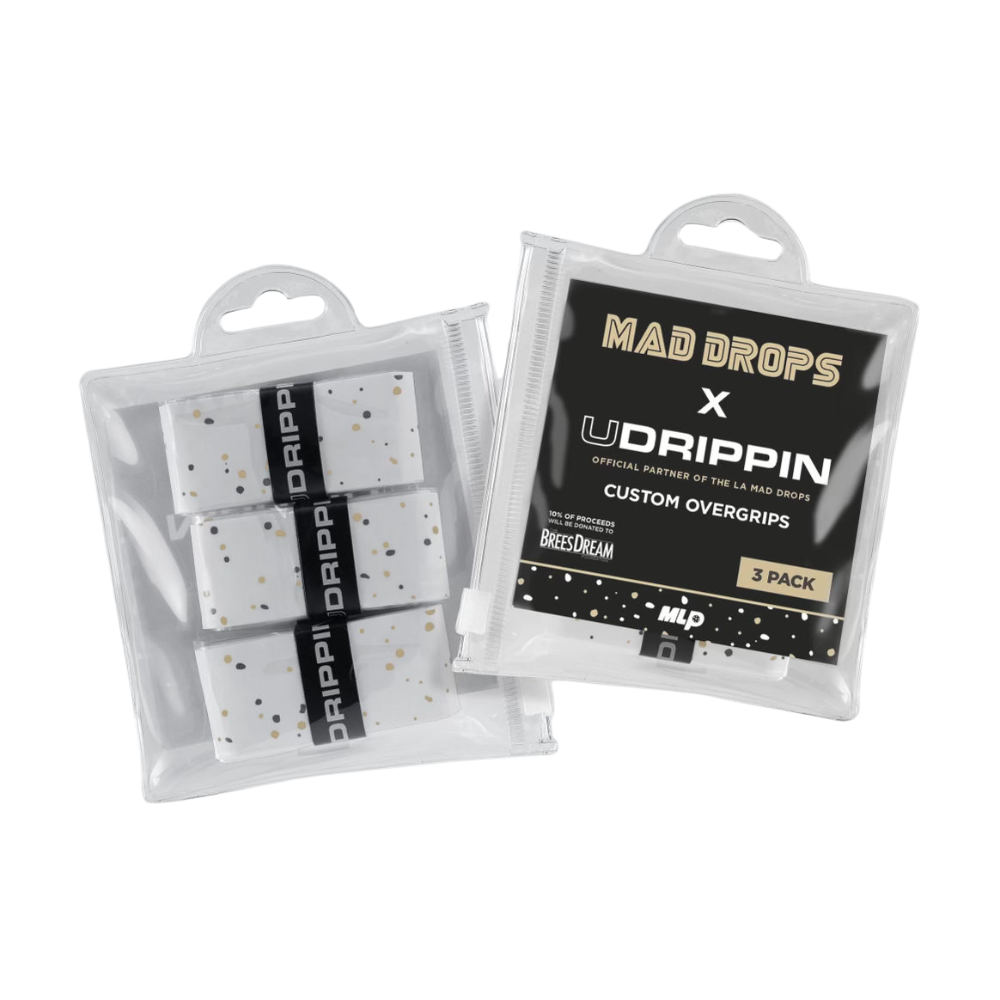 We have teamed up with the legendary NFL star Drew Brees and the LA Mad Drops MLP Team to create a truly one-of-a-kind collaboration. These custom grips that pay homage to Brees' illustrious career as a Super Bowl Champ with the New Orleans Saints. The grip flakes are inspired by the vibrant energy and passionate fanbase of the Saints. The flakes capture the essence of the team's colors with White, Black and Gold.
