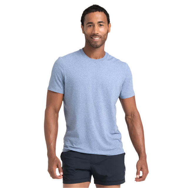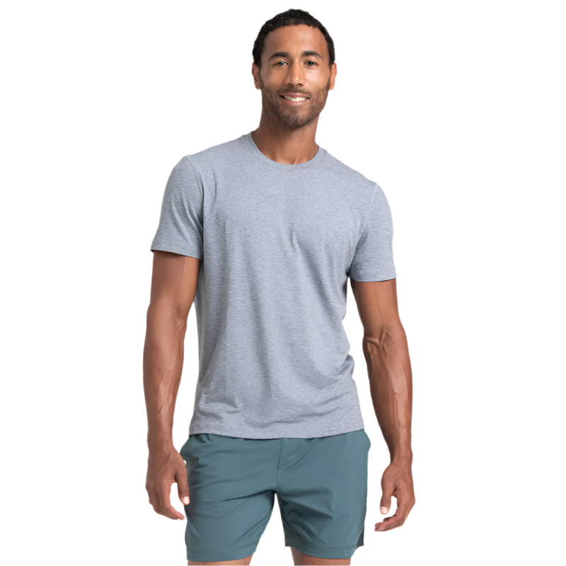 The Drumlin Everyday Crew gives your shoulders room to move and tapers to a narrower fit through the waist to create a strong silhouette. The lightweight fabric wicks moisture and athletic side panels keep you cool no matter how much you sweat it out.