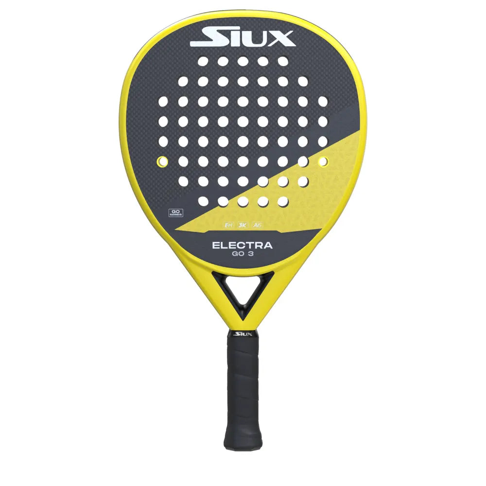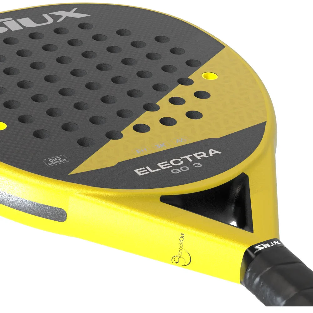 The Siux Electra Go 3 padel racket is perfect for versatile, aggressive players seeking dynamic performance without sacrificing power. Its hybrid shape and medium-high balance allow you to dominate both at the backcourt and the net, offering an ideal blend of control and aggression. The 3K carbon surface and medium-hard feel ensure a firm, explosive response, ideal for players aiming to deliver powerful shots with every swing.