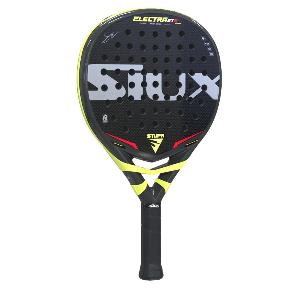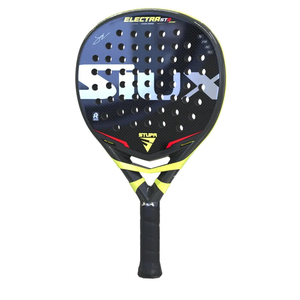 The Siux Electra ST2 Junior, a scaled-down version of Franco Stupaczuk’s iconic ST2, is designed for young padel players developing their skills. Its hybrid shape and low balance offer easy handling and precise control, perfect for juniors mastering both offensive and defensive play.