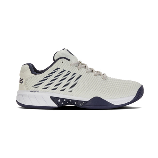 K-Swiss' best-selling shoe, the Hypercourt Express 2, is a light, comfortable, breathable shoe with a generous fit - making it the ideal shoe for a variety of playing styles and levels. Durawrap Flex, gives the shoe support with no break-in period, while Surgelite midsole technology provides all day comfort.