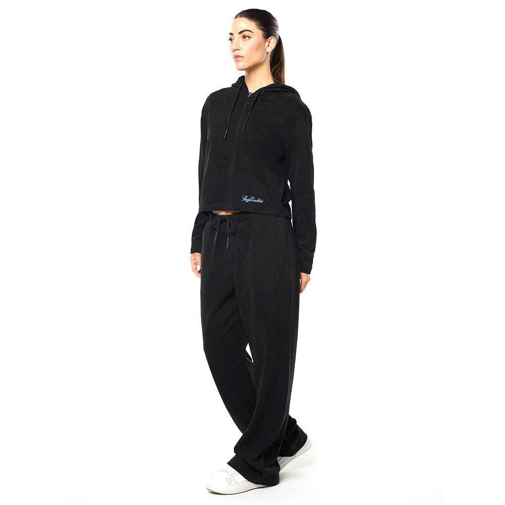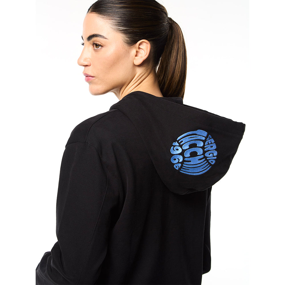 Classic comfort, reimagined. The Nera Hoodie is crafted from heavyweight cotton French terry in a relaxed, cropped silhouette that delivers warmth with contemporary style. A spacious double-layer hood features custom Sergio Tacchini tennis artwork embroidery, while side-seam handwarmer pockets secure all your essentials. Zip it up, layer it on, and elevate your everyday.