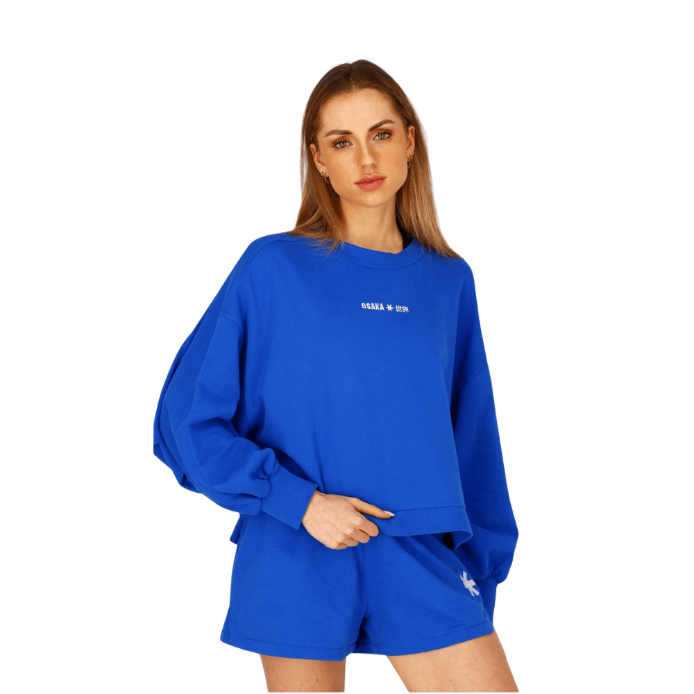 The Osaka Women Cropped Sweater in Princess Blue is designed for both on and off the court, offering a relaxed fit that allows for comfortable movement. With its stylish cropped design and versatile athleisure appeal, this sweater is perfect for the modern woman looking for fashion and function in one.