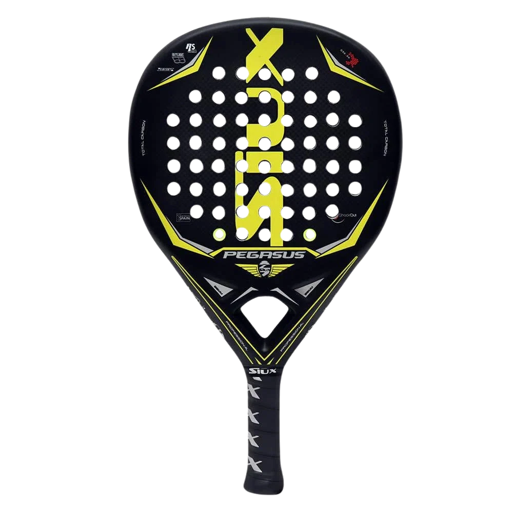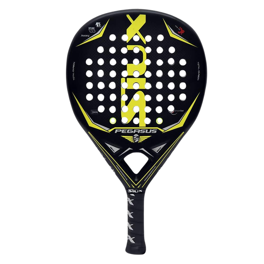 The Siux Pegasus 3K Yellow '22, a vibrant model in Siux’s premium lineup, is crafted for advanced players seeking a balance of power and precision. Its teardrop shape and medium balance deliver versatile handling, ideal for dominating aggressive net play and controlled backcourt shots.