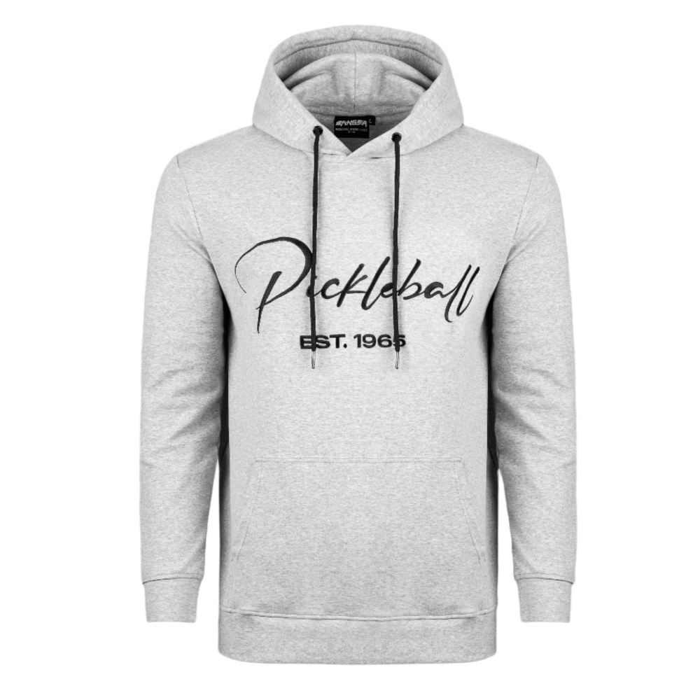 Made from an incredibly soft blend of cotton and spandex, and boasting an elegant embroidered "Pickleball Est. 1965" on the front, this hoodie can be paired well with jeans on a night out.
