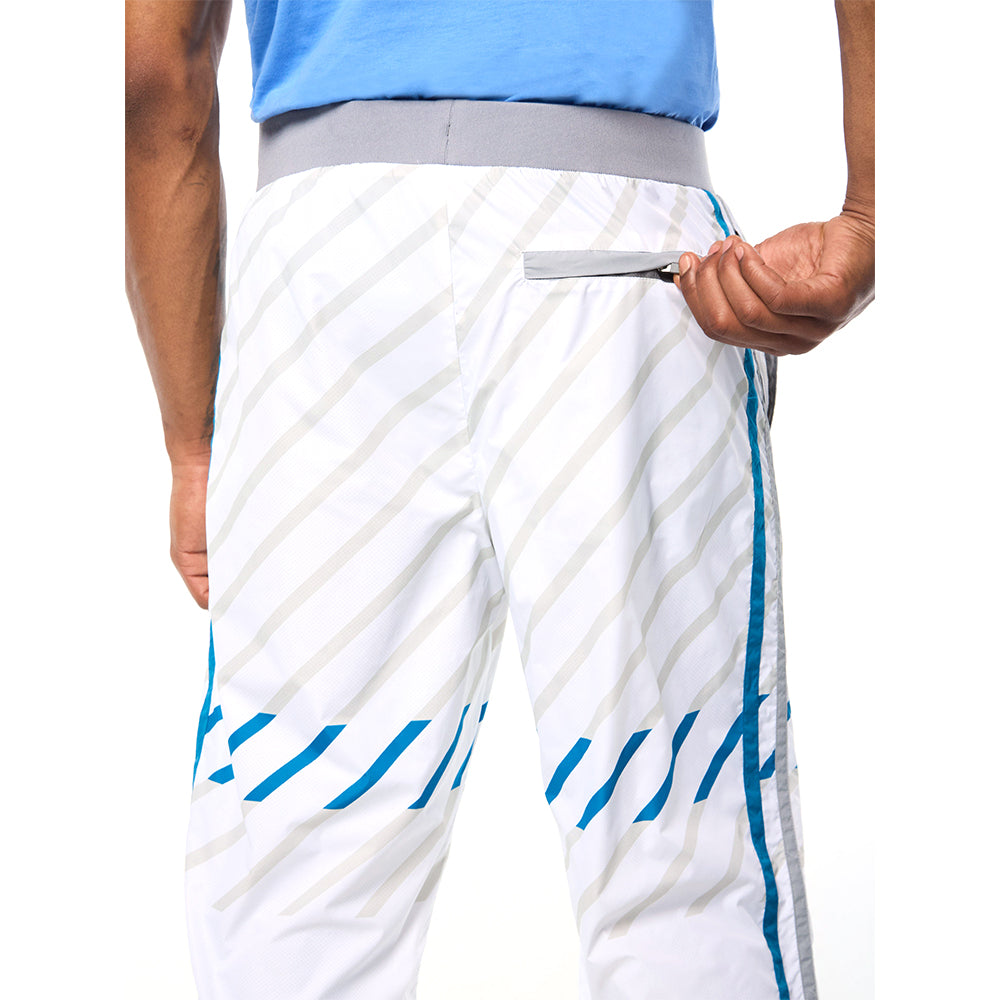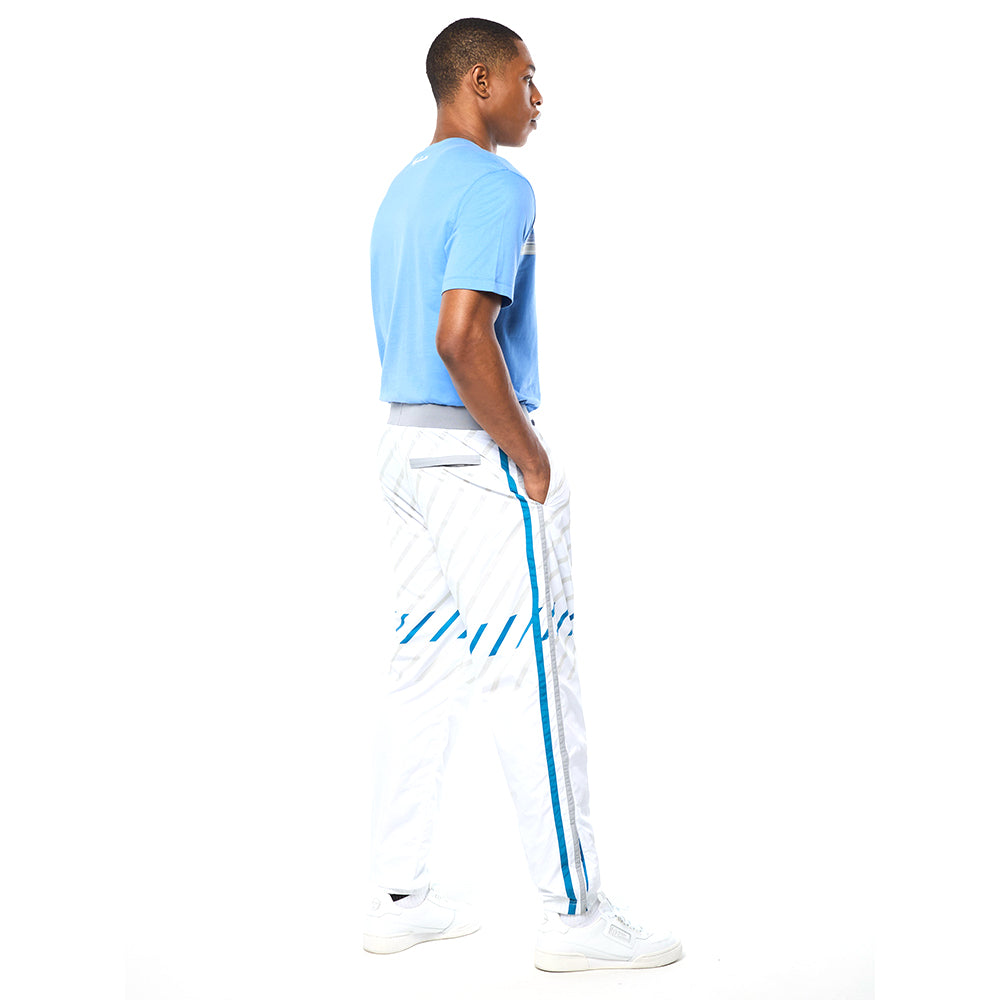 Retro sport energy meets everyday versatility. The Quadretto Track Pant is crafted from lightweight, water-resistant nylon taffeta with a breathable mesh lining— built to move on and off the court. An all-over diagonal stripe print and double stripe taping down the legs turns heads, while convenient ankle zips make for easy gear changes before and after workouts.