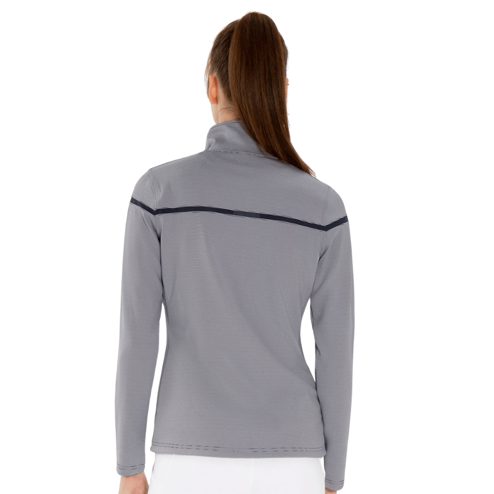 This stylishly feminine performance knit jacket puts glamour into your active wear. Slimming silhouette with contrast inset across upper chest and sleeves. Two front pockets for safekeeping of your personal items. A perfect item for warmup on tennis court or a cool day at the golf course.