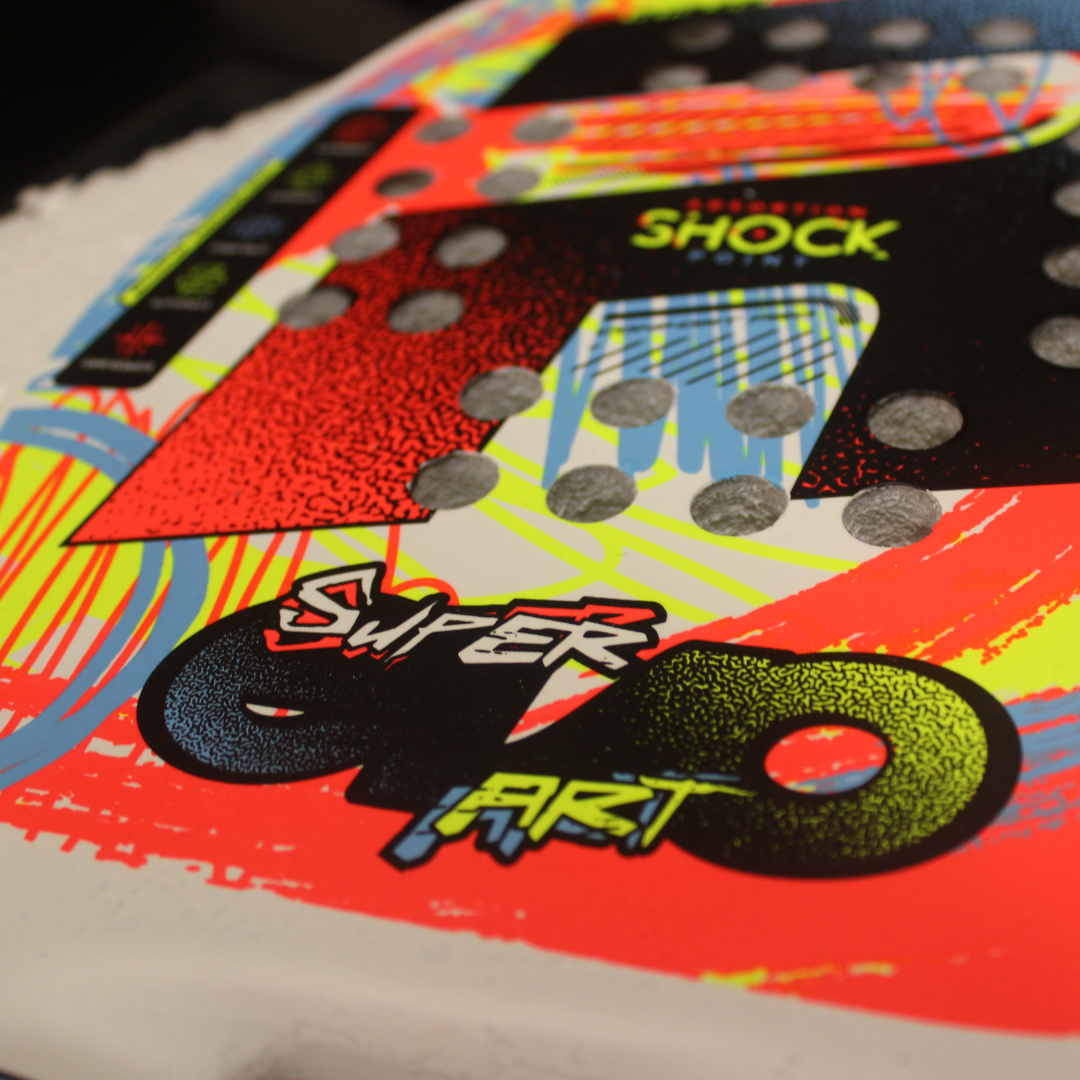 This racket has a Shock Absorption system that reduces the vibrations produced by the impact of the ball, avoiding possible elbow (epicondylitis) and shoulder injuries.