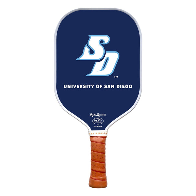 Introducing the San Diego Toreros Founders Blue SD Mark Pickleball Paddle – a must-have for every dedicated San Diego Toreros fan! This paddle, designed in collaboration with the University of San Diego and Rally Republic, a leading USA-based manufacturer of pickleball products, combines team pride with exceptional performance. Whether you're a seasoned player or a pickleball enthusiast, this paddle will help you dominate the court while proudly displaying your love for the Toreros.