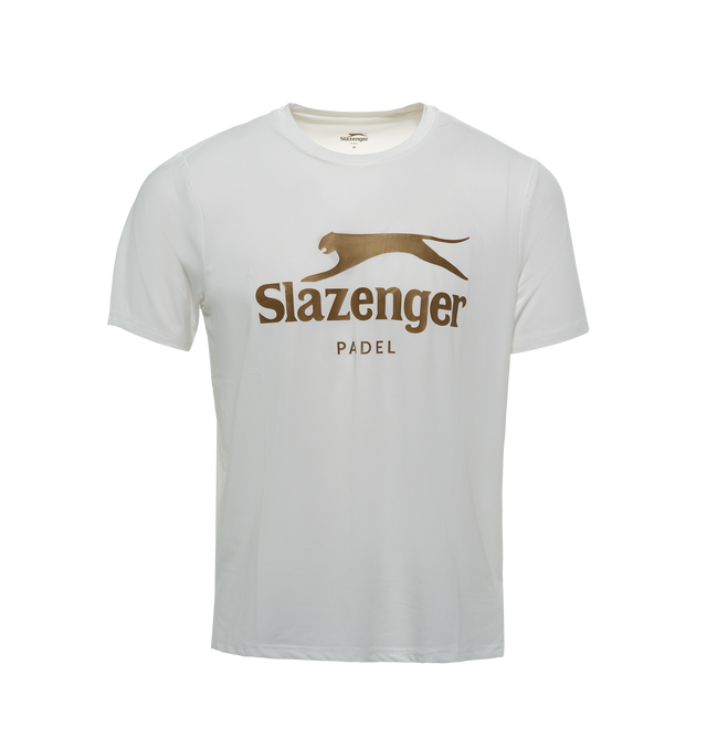 Keep your cool when your games get hot with this Short-Sleeved T-Shirt made of lightweight and breathable COOLMAX AIR fabric. Features a prominent tonal Slazenger Panther logo on the chest. If choosing between two sizes, choose the bigger one.