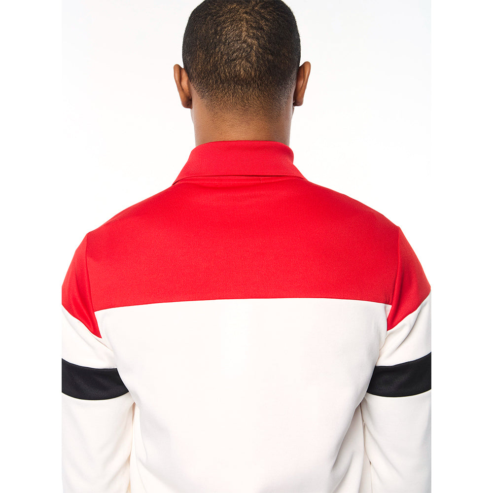 A Tacchini fan favorite, the Tomme Track Jacket is made of soft poly-cotton featuring color-blocked paneling and stripe bands at the sleeves for a retro vibe. Sporting an embroidered 'ST' monogram at the left chest, this premium full-zip track jacket is finished with a spread collar, spacious handwarmer pockets, and rib-knit trims.