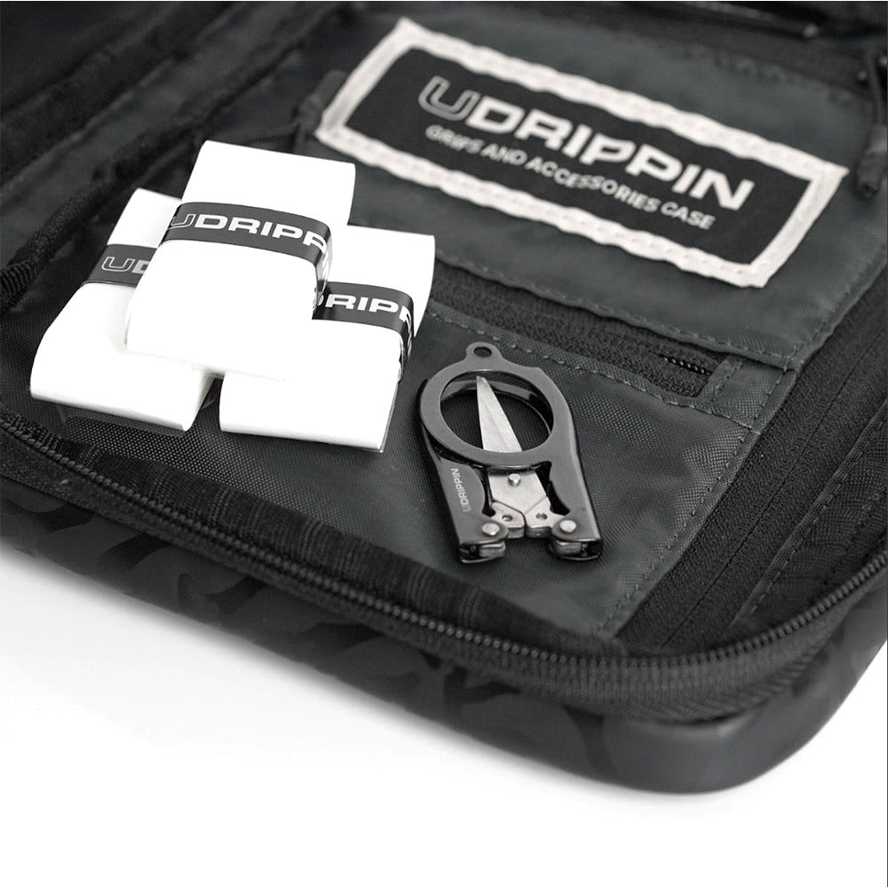 Included with the case are mini UDRIPPIN scissors and a 3-pack of grips. Compact yet spacious, the case also has two small pockets to hold smaller items, making it the perfect companion for any player on the go.