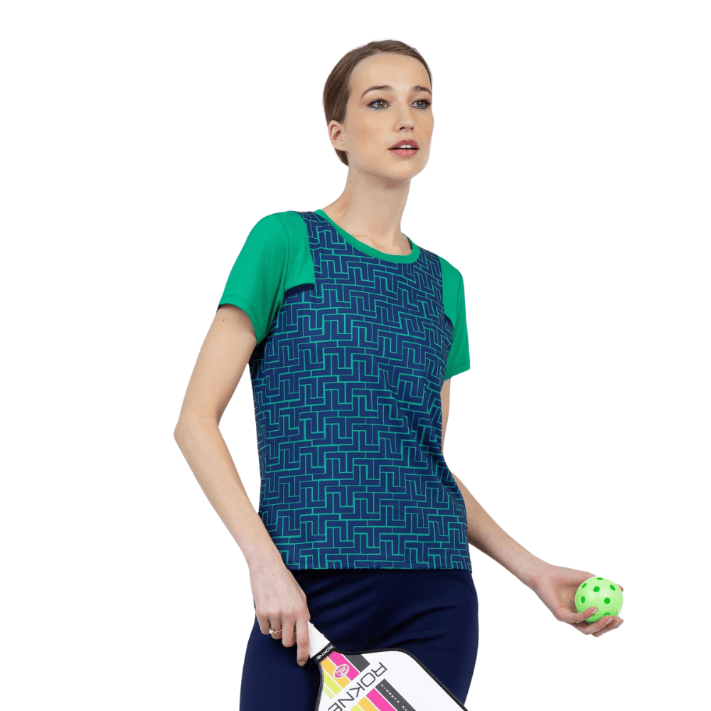 inPhorm NYC Colorblock Active Sofia Short Sleeve Crew Neck - Ink Tessel/Ivy