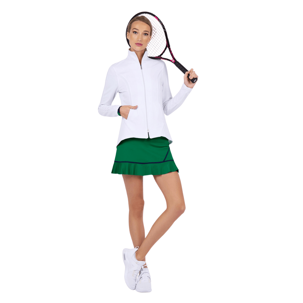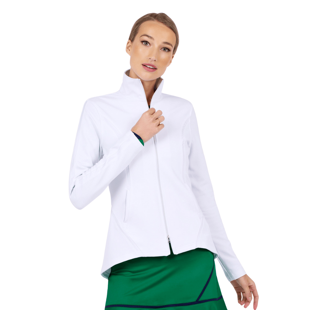 Our stylish Harlow Knit Jacket is designed to flatter your body with flounced hem at the sides and longer back length. It is made from our cotton feel technical fabric with sun protection. Constructed with style and details to make you feel elegant during a game or at the club house.