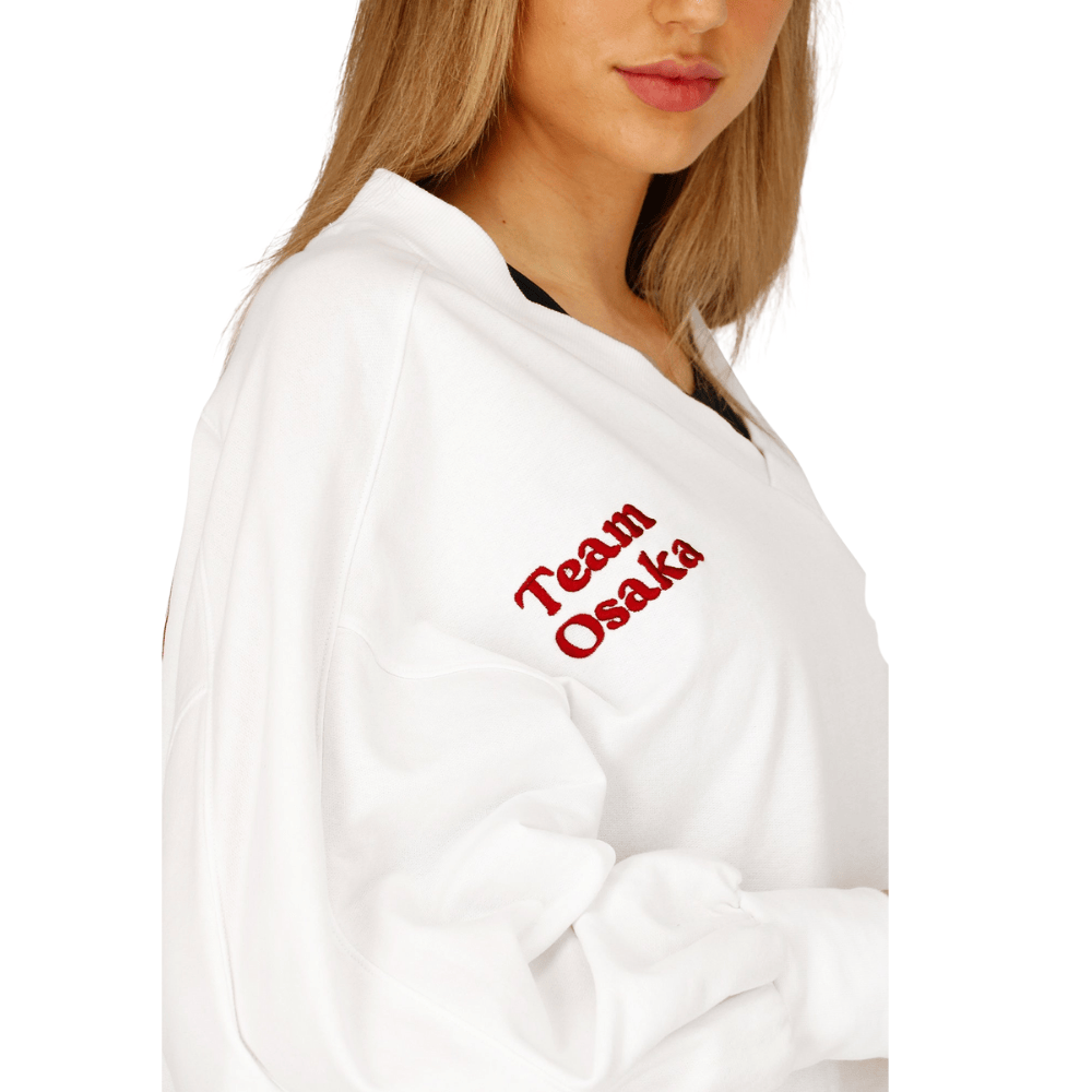 This Osaka Women's V Neck Cropped Sweater is designed for both on and off the court wear. With its v-neck design, cropped length, and relaxed fit, it offers a comfortable and stylish look. Made from a cotton blend, it provides lightweight breathability, making it perfect for athletic or casual wear.