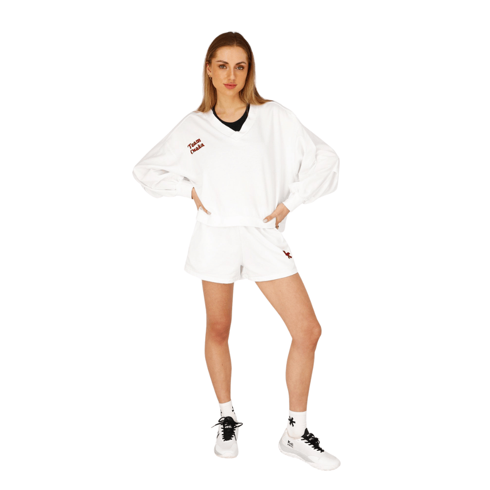 Osaka Women V Neck Cropped Sweater | White - White / S is backordered and will ship as soon as it is back in stock.