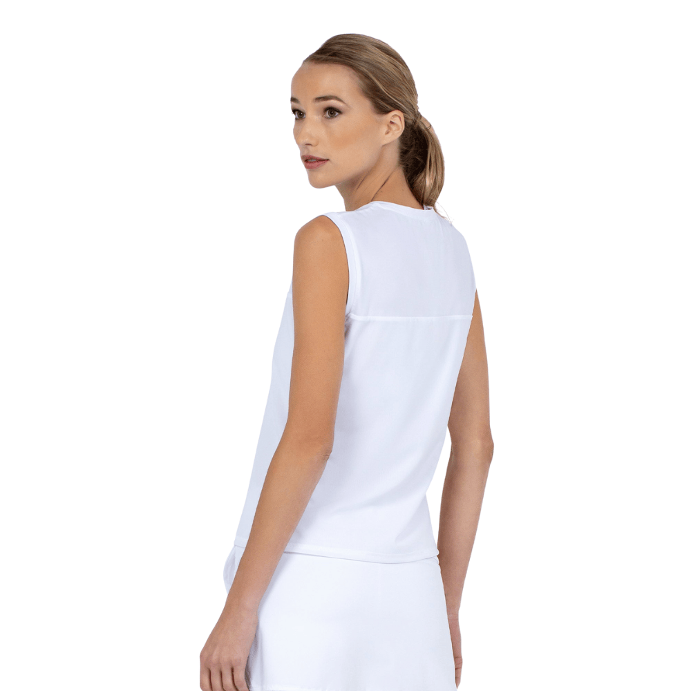 inPhorm NYC Relax-Fit Crewneck Tank with Light Mesh Overlay - White