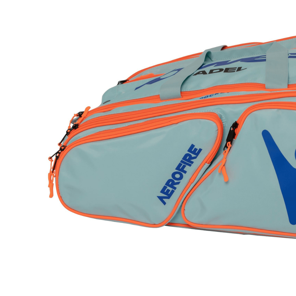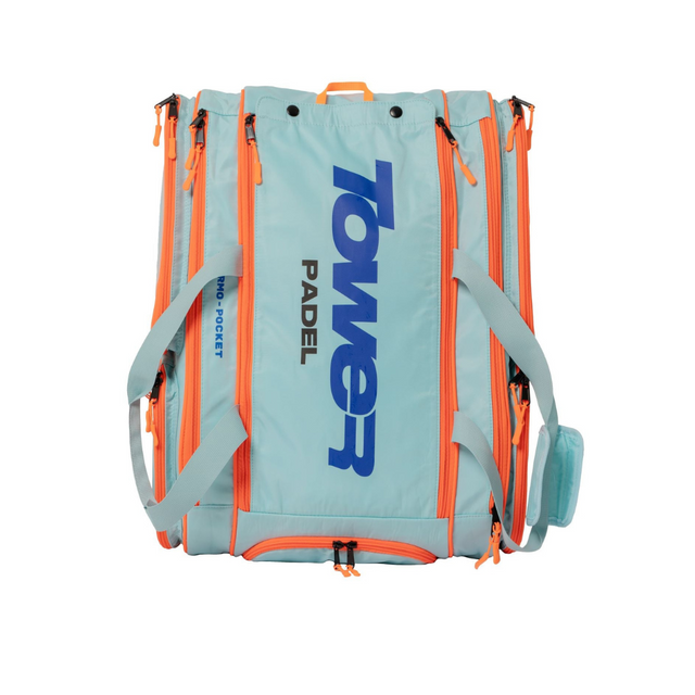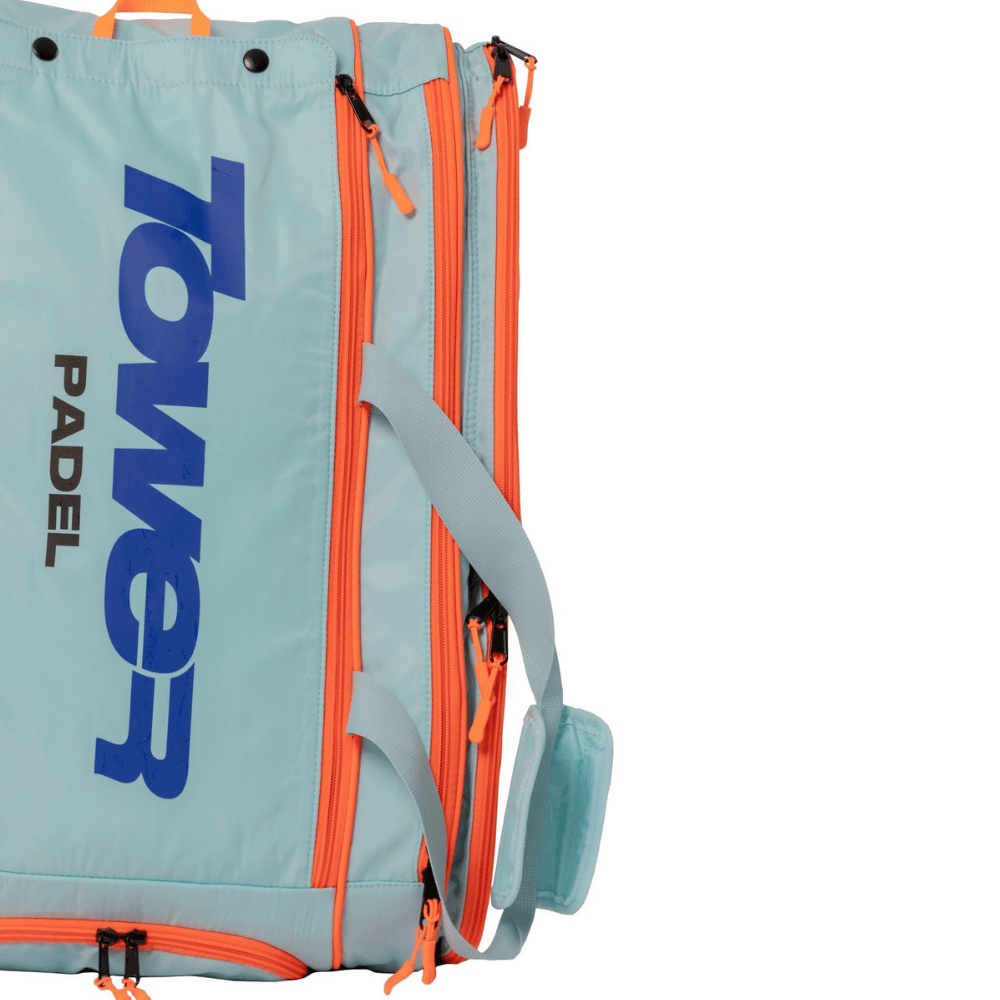 Crafted from high-quality, durable materials, the Court Cruiser features a spacious main compartment that accommodates multiple padel rackets, shoes, and accessories. Its vibrant turquoise and orange color scheme stands out at the club, while multiple zipped pockets ensure your essentials are organized and easily accessible.