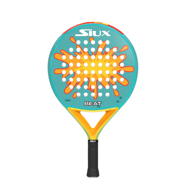 The Siux Beat Kid, part of Siux’s Junior Series, is crafted for young padel players aged 6-10 years old beginning their journey. Its round shape and low balance ensure easy handling and precise control, ideal for juniors developing their technique in both defensive and offensive play.