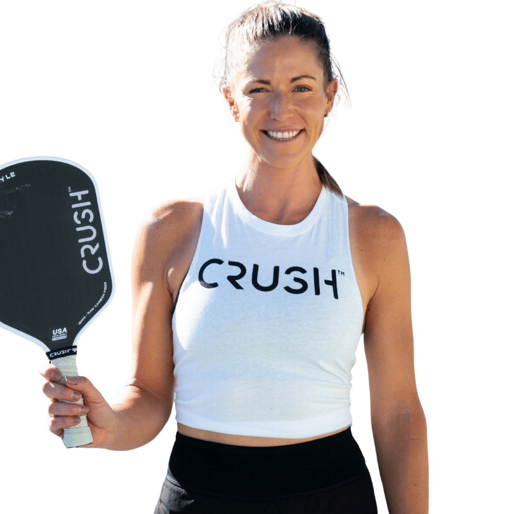 Crush Sports Women Black Logo White Crop Tank Top - LARGE is backordered and will ship as soon as it is back in stock.