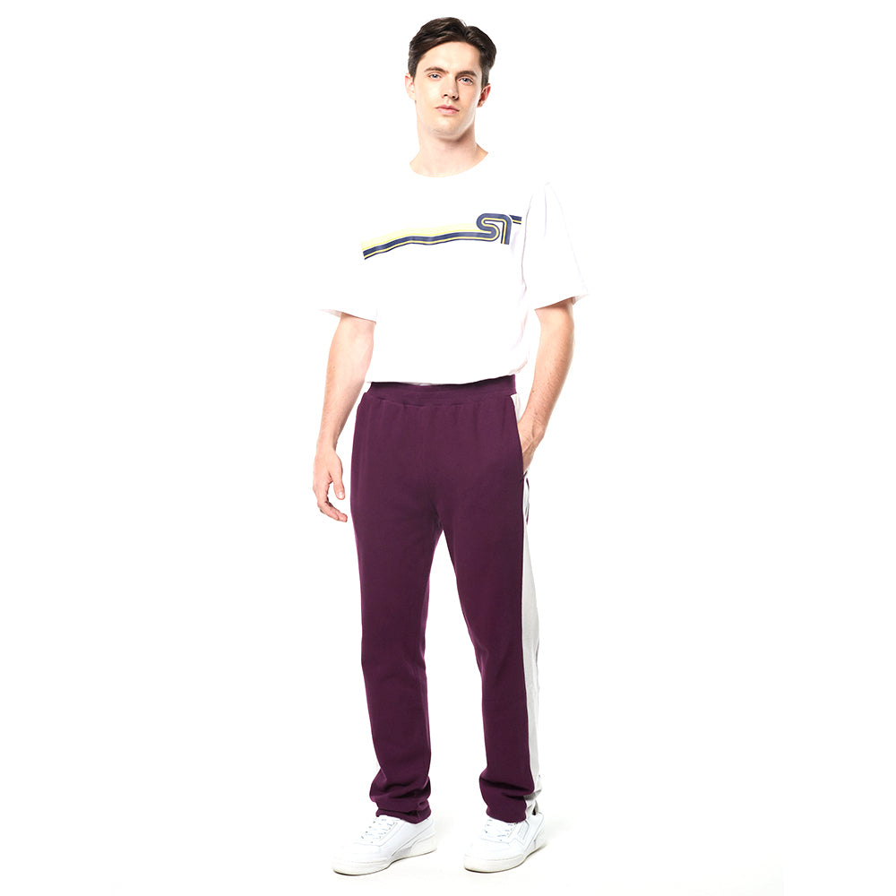 A refined take on retro sportswear. The Cursivo Track Pant is crafted from heavyweight cotton French terry for plush comfort with a structured feel. Designed with contrast side panels and a printed stripe detail for a clean, sporty vibe, these elevated track pants are ideal for downtime, warmups, and everything in between.