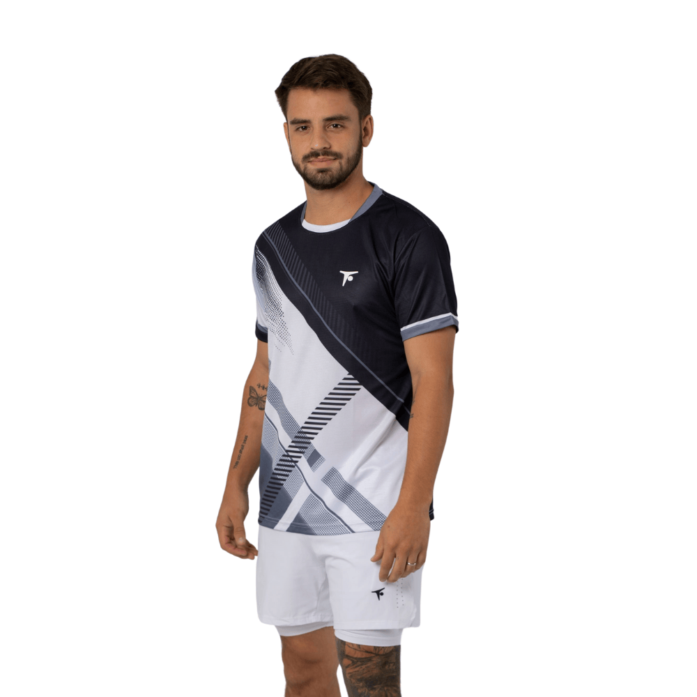Unleash your potential with the Geo Sprint Tee, designed for the modern athlete who values style as much as performance. This T-shirt features a bold, geometric pattern that not only looks sharp but also embodies the dynamic spirit of competitive sports.