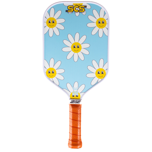 Introducing the Joyful Petal Evo-Lite Series pickleball paddle - a happy design featuring a daisy flower with a smiley face. Stand out on the court with this quirky and fun paddle that fits any style. Serve with a smile!