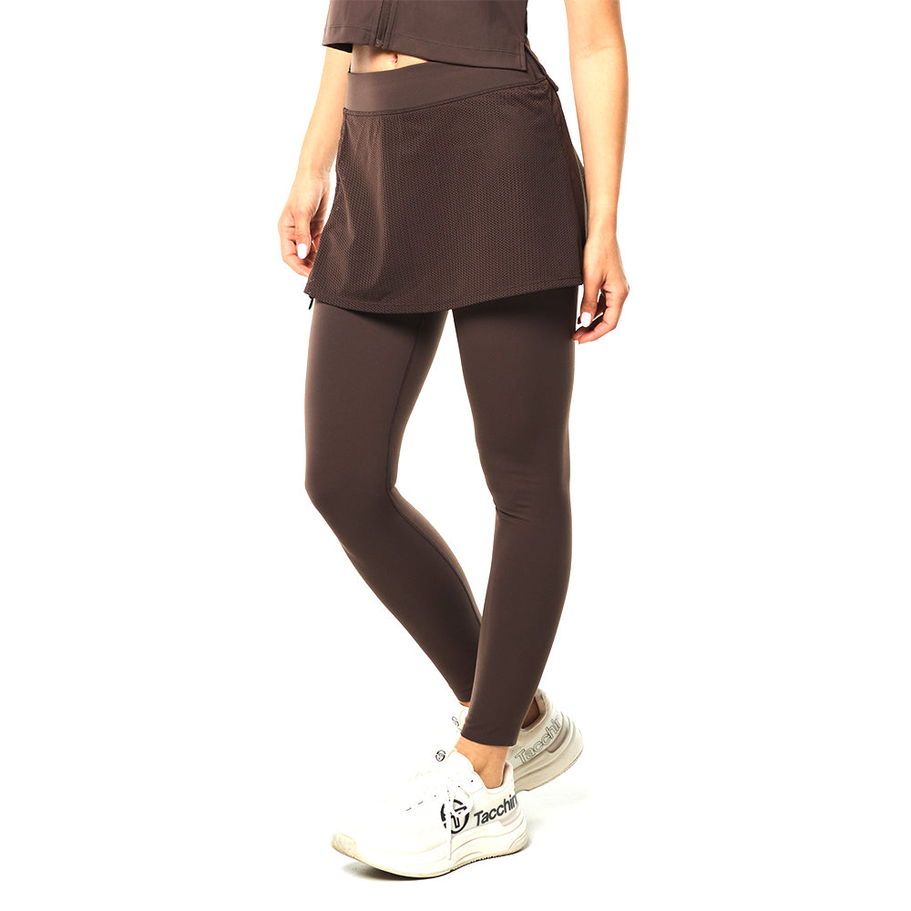 A two-in-one fit that's built to move. The Milana Legging combines high-performance design with fashion-forward details—pairing a breathable mesh skirt over smooth and stretchy contour leggings. An adjustable bungee cinch at the hem creates custom gathering textures, while a wide waistband provides all-day comfort. Sporty, sleek, and made to stand out—on or off the court.
