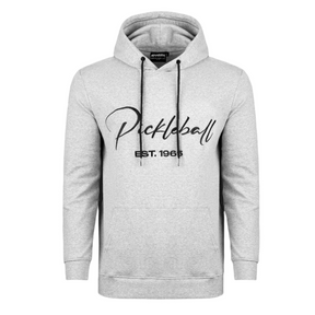 Made from an incredibly soft blend of cotton and spandex, and boasting an elegant embroidered "Pickleball Est. 1965" on the front, this hoodie can be paired well with jeans on a night out.