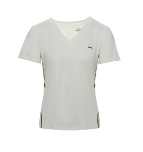 When your games get hot, cool it off in this classic, Short-Sleeved, V-neckline T-Shirt made of breathable and lightweight COOLMAX AIR fabric. Features a slight golden Slazenger Panther logo on the left chest.
