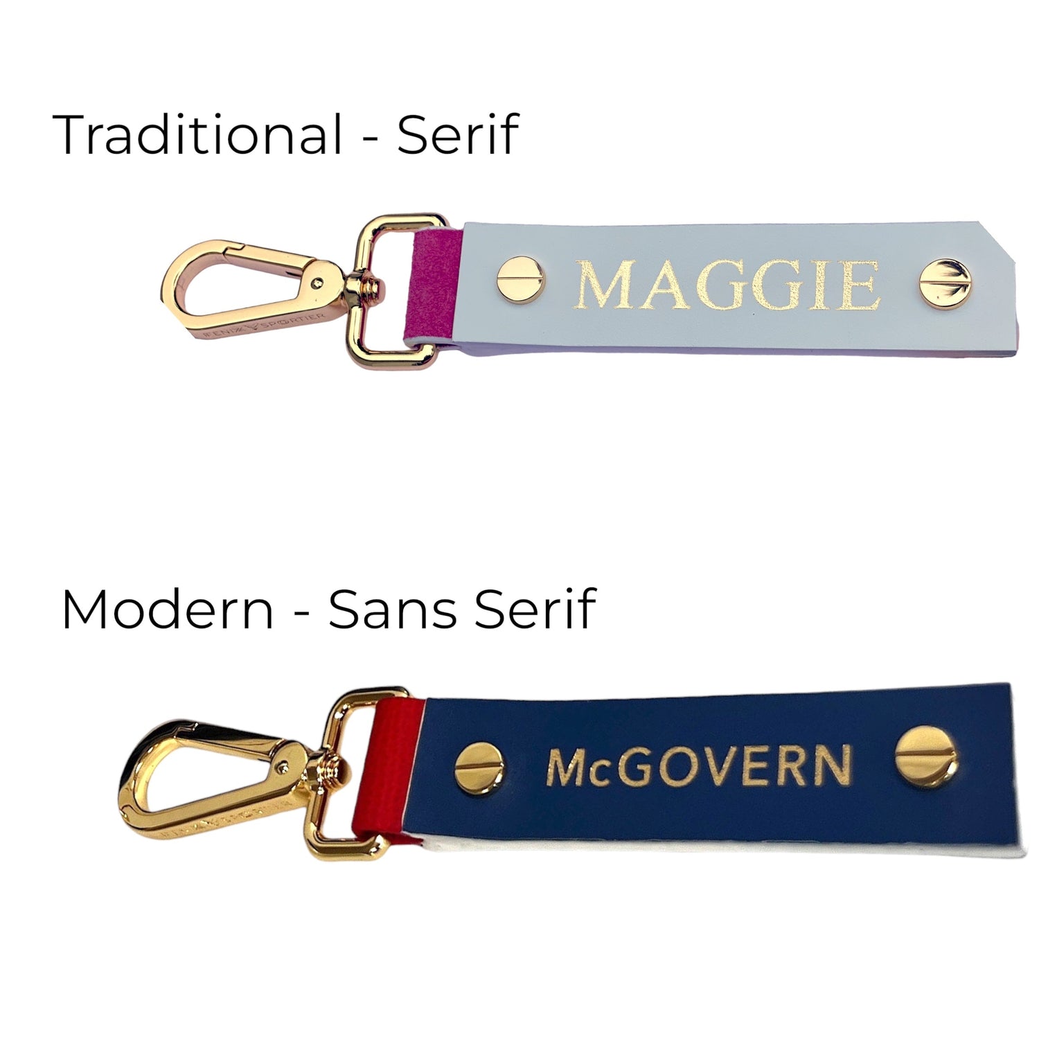 Note - Monograms will be stamped in foil to match the zipper and hardware unless otherwise requested to be clear embossed.